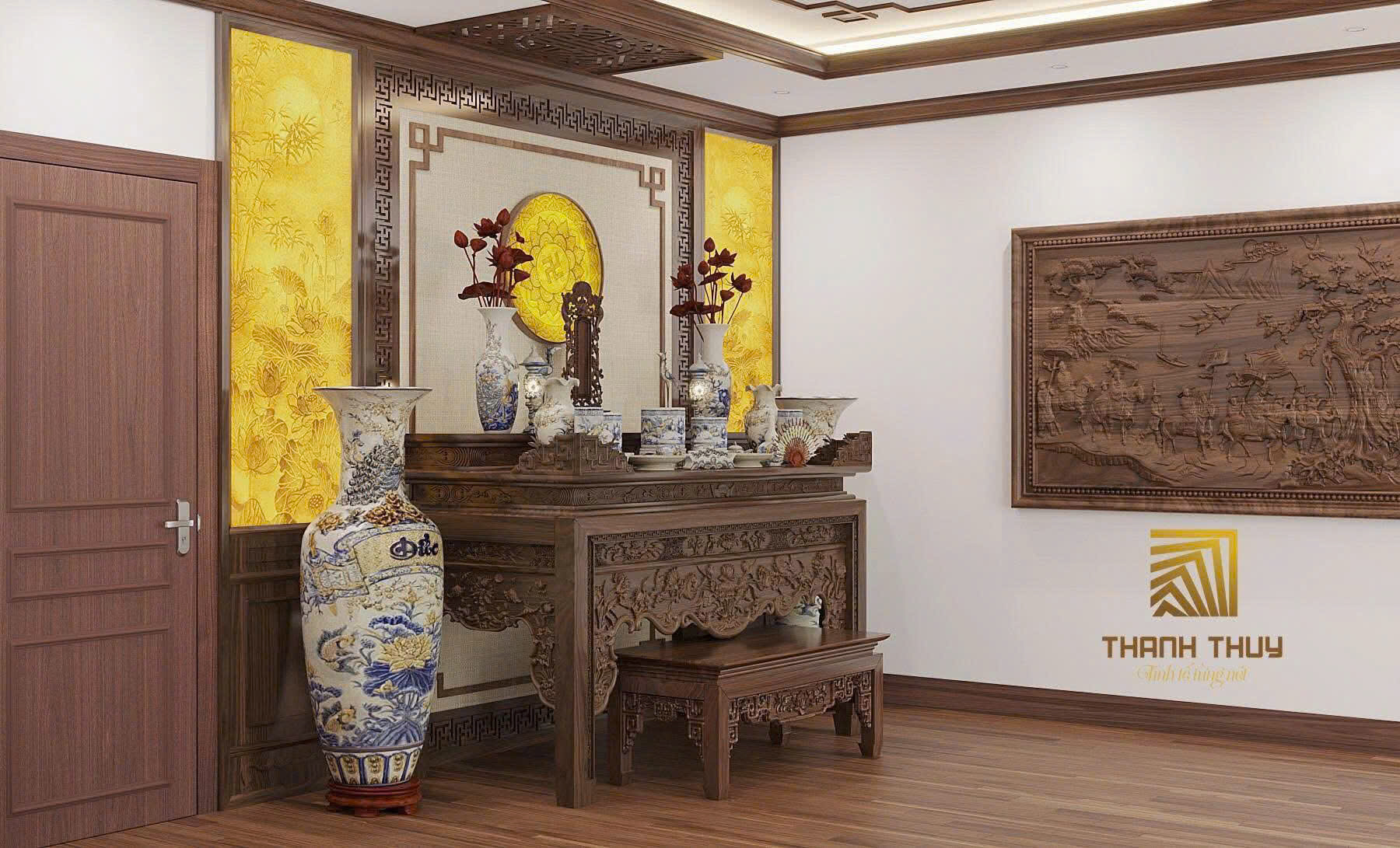 📍 Hình ảnh là mẫu vách thờ 3D sắp thi công cho khách hàng của chúng tôi – một công trình đậm chất truyền thống kết hợp với nét hiện đại, sang trọng và đầy linh khí.